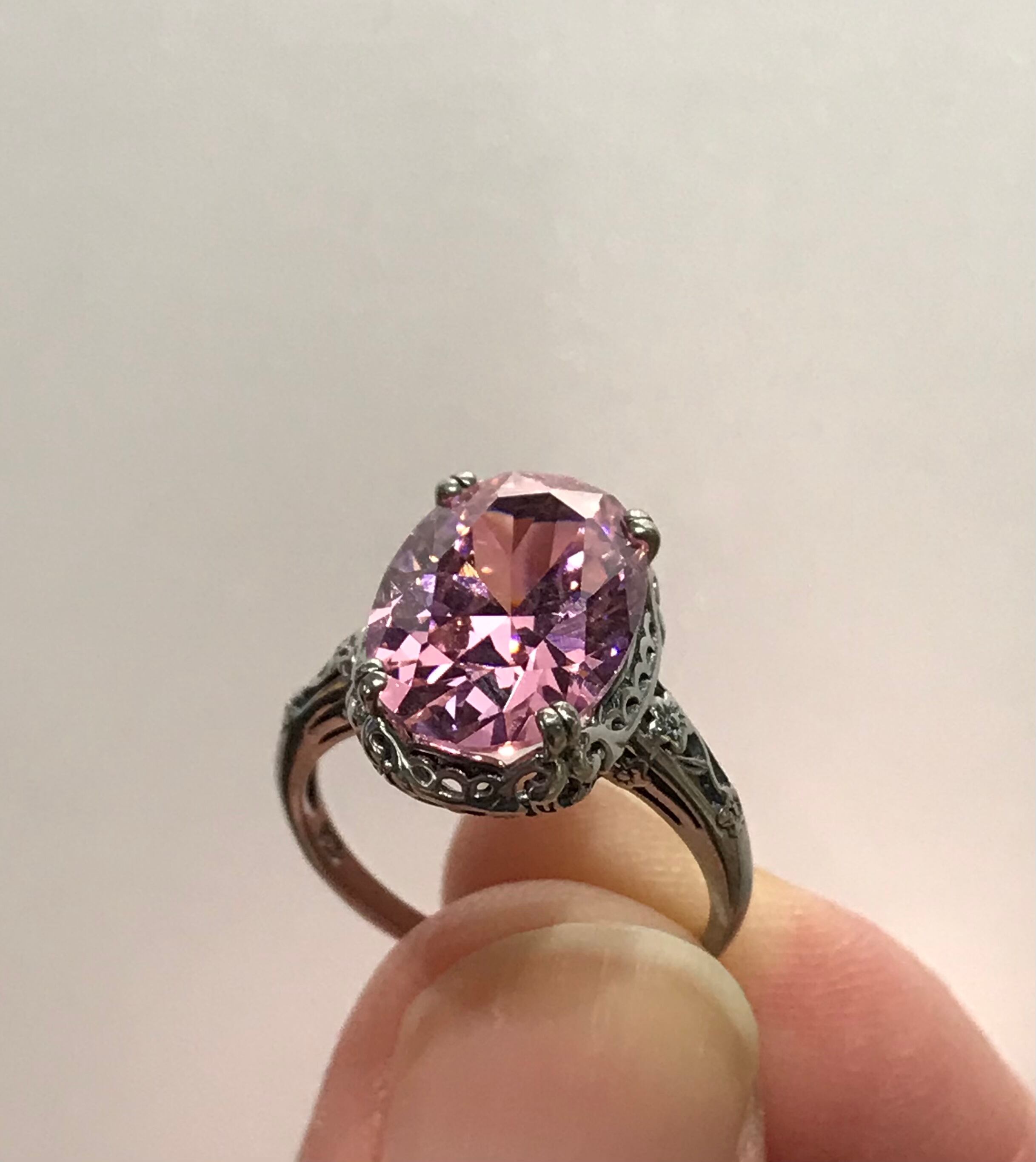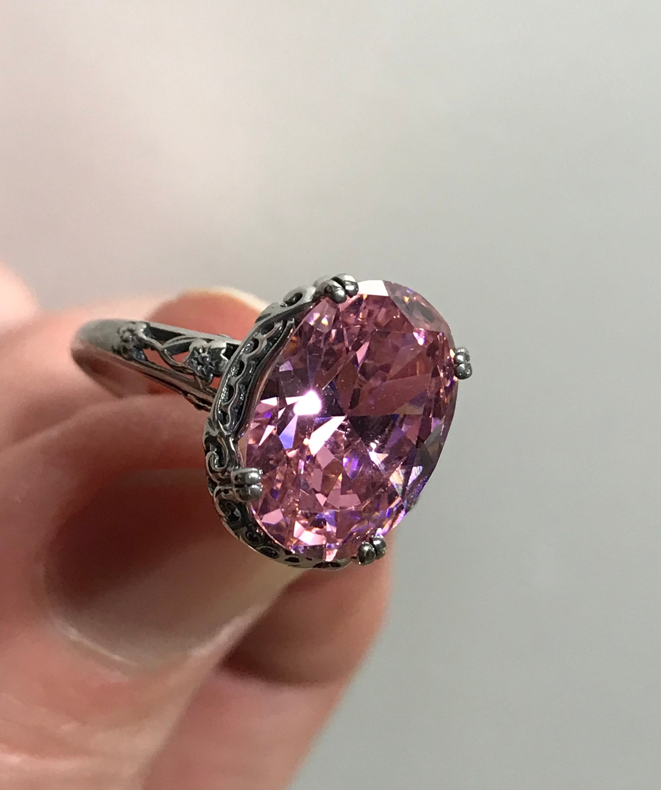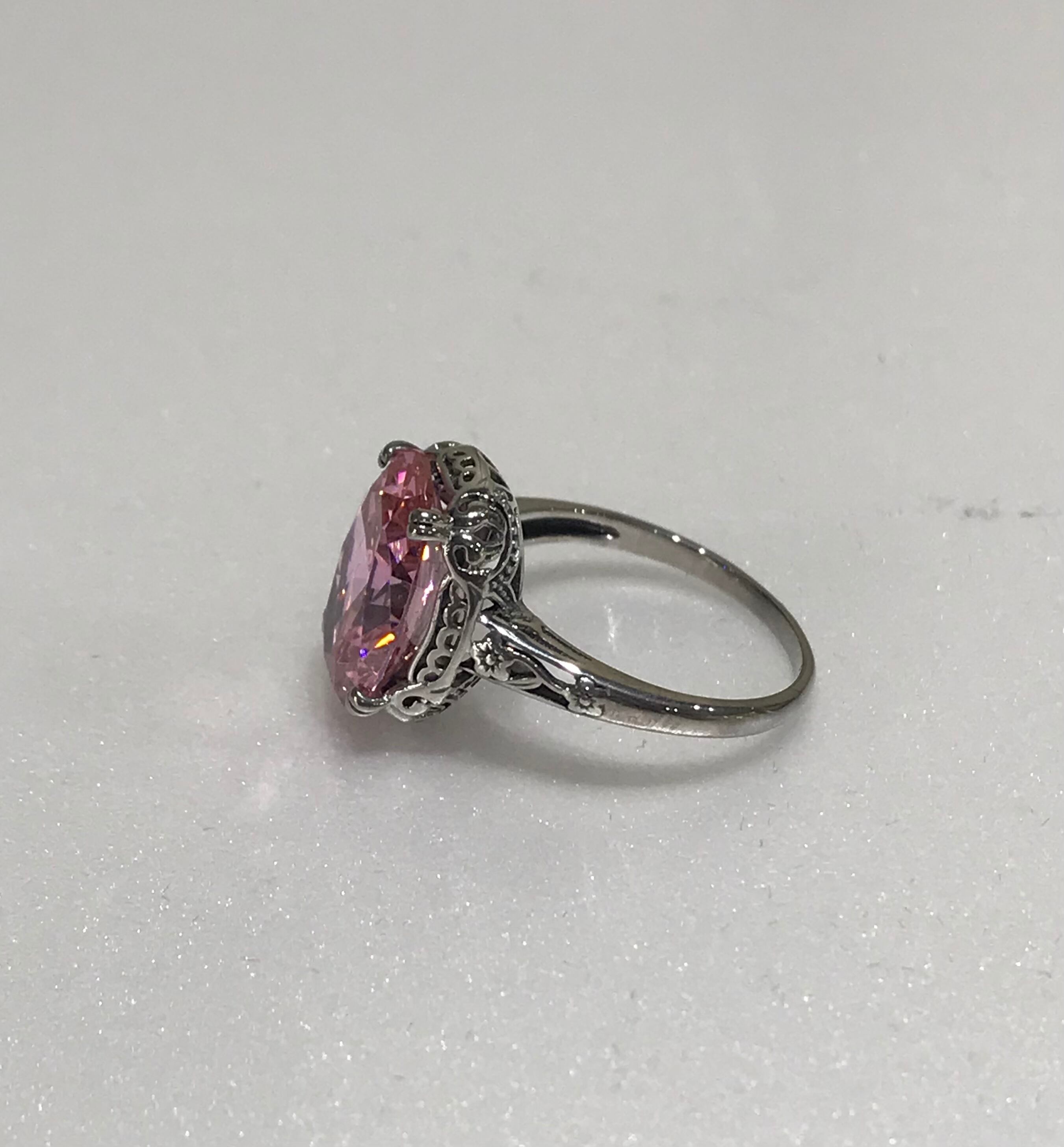 6ct Pink Cubic Zirconia (CZ ) フィリグリー細工のリング エドワードデザイン(フィリグリー細工)のリング