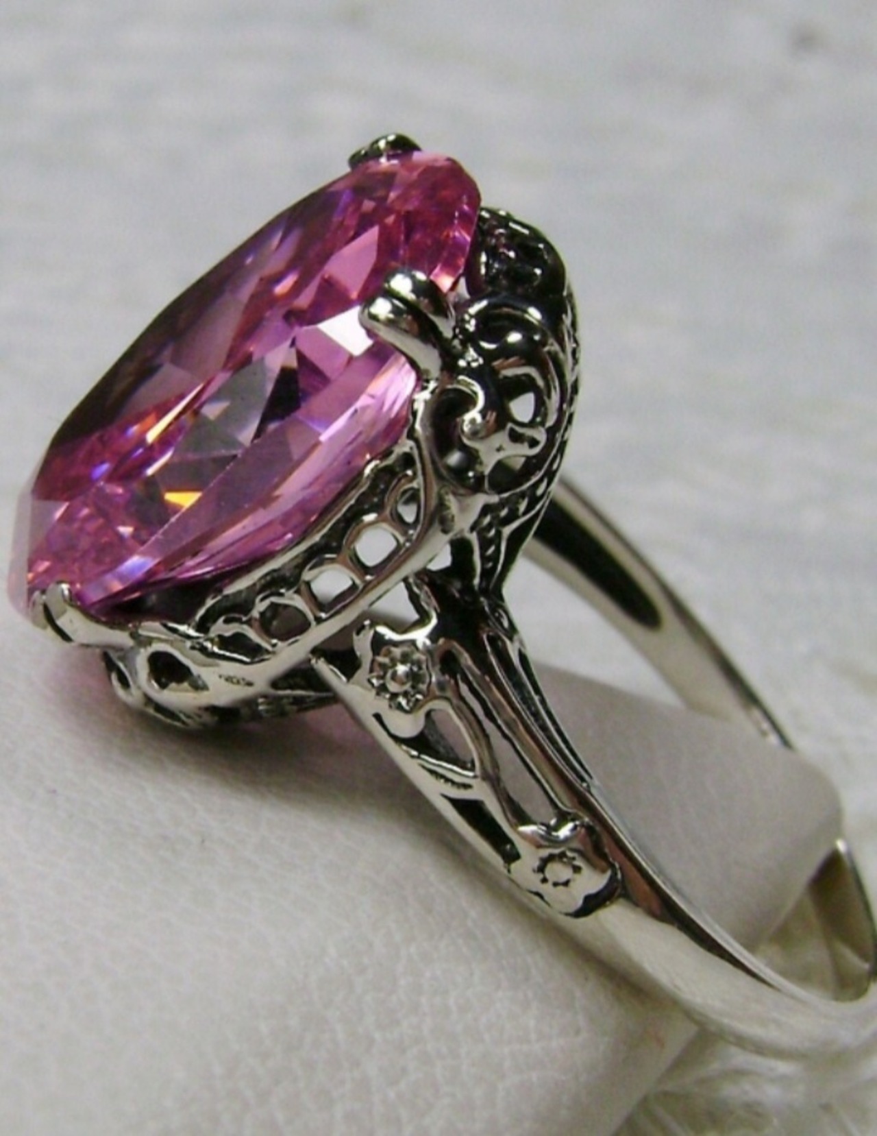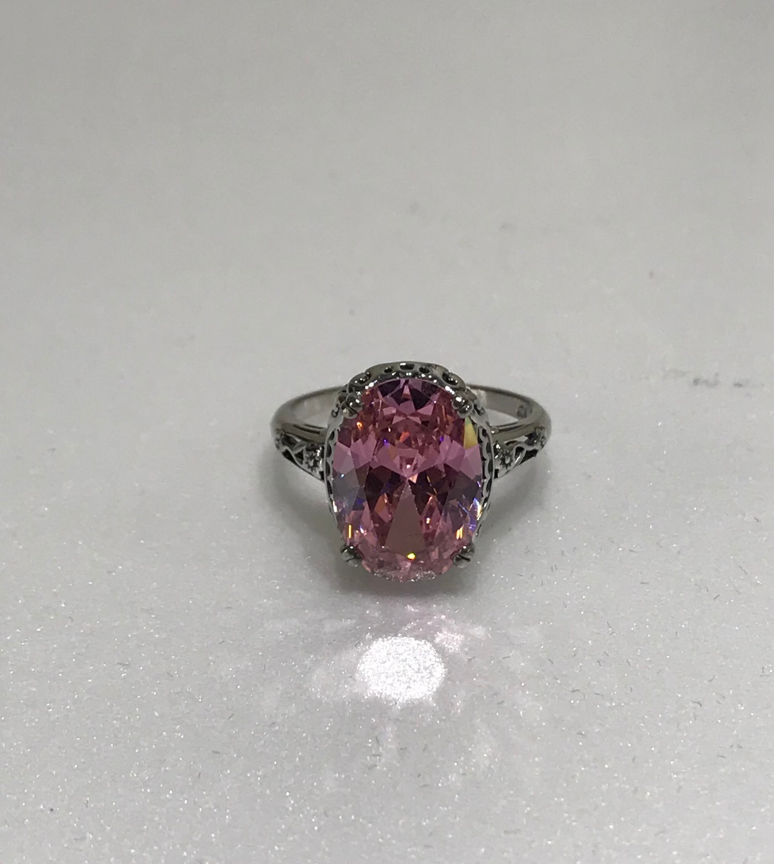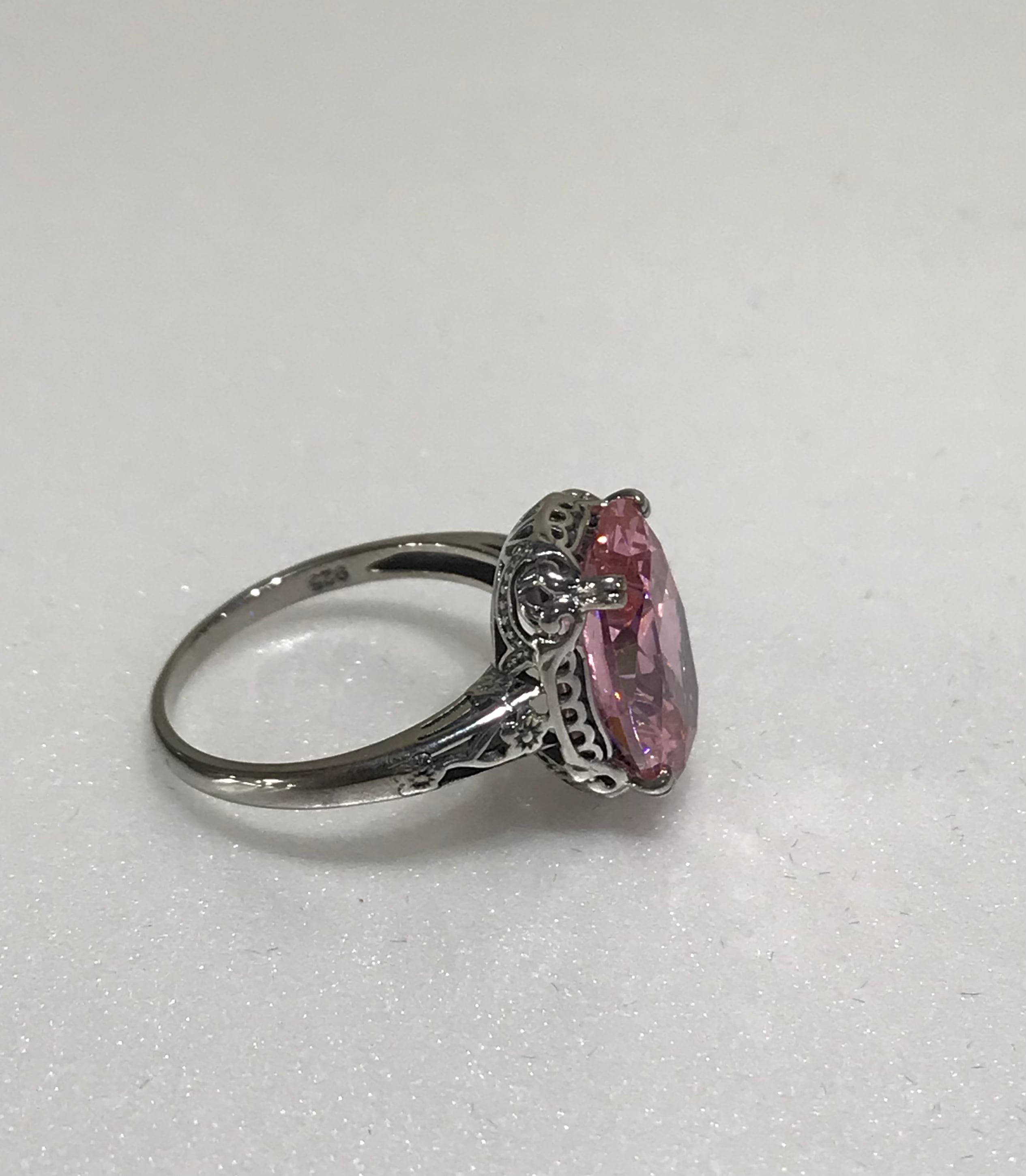 高品質のPinkのCubic Zirconia (CZ)を立て爪フィリグリー細工のエドワードデザインで作った925 sterling silverリングです。