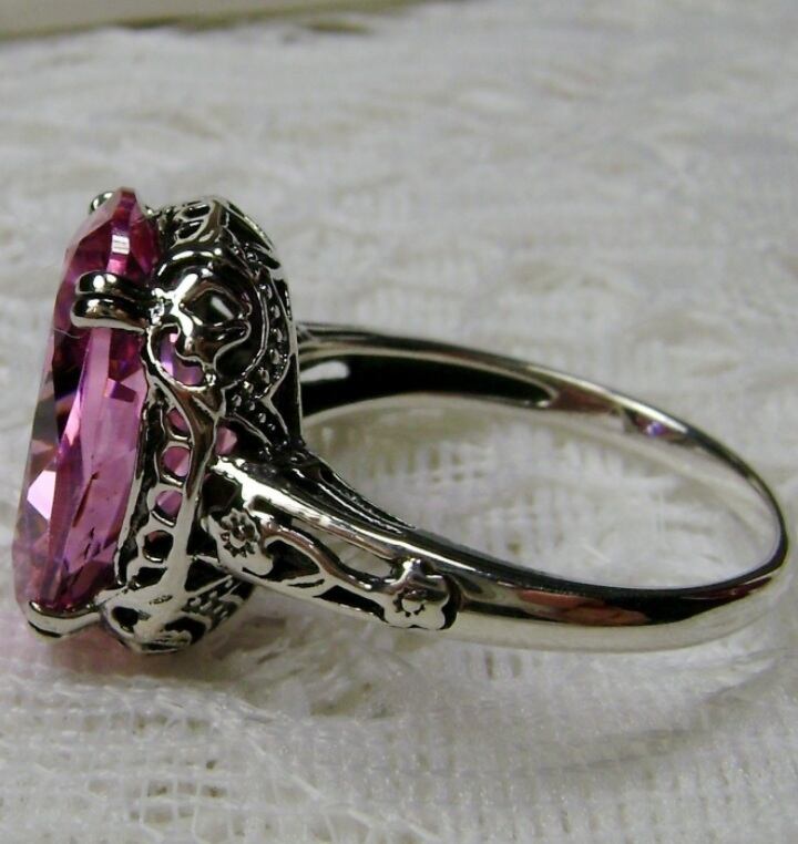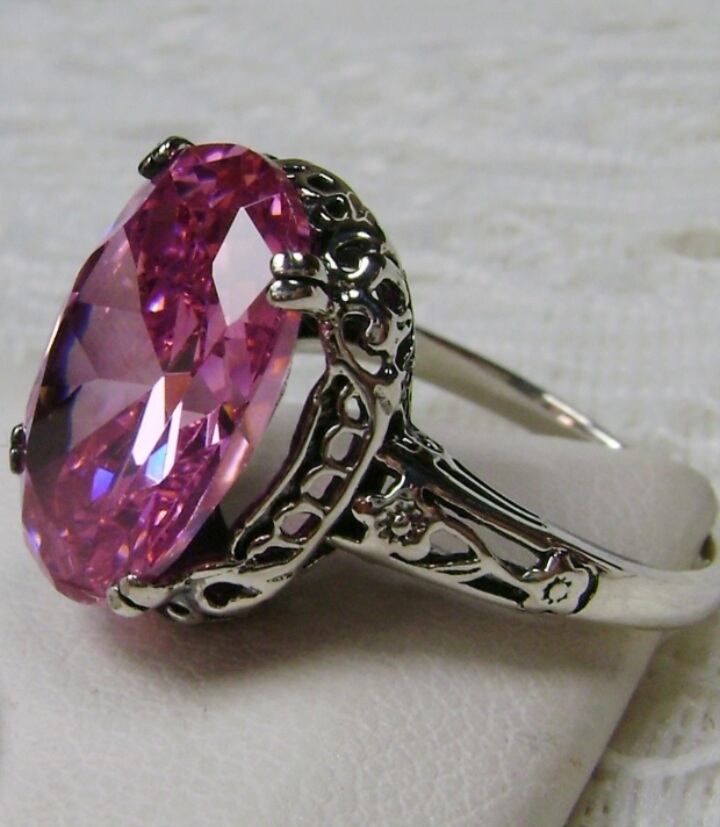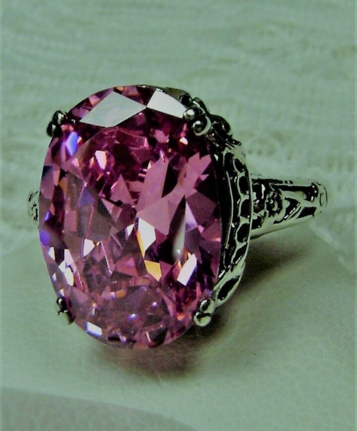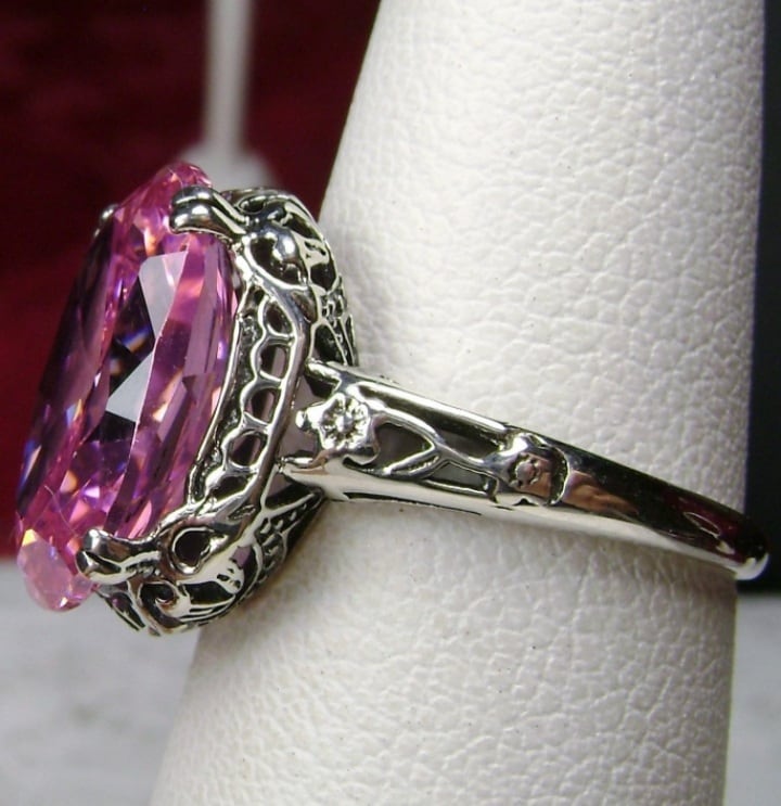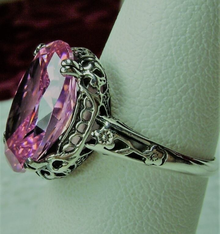 高品質のPinkのCubic Zirconia (CZ)を立て爪フィリグリー細工のエドワードデザインで作った925 sterling silverリングです。