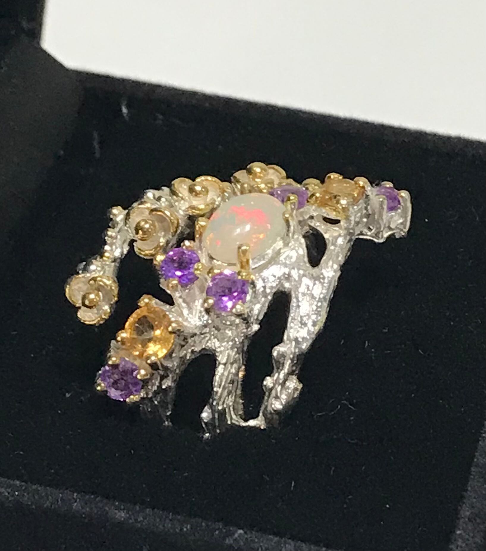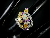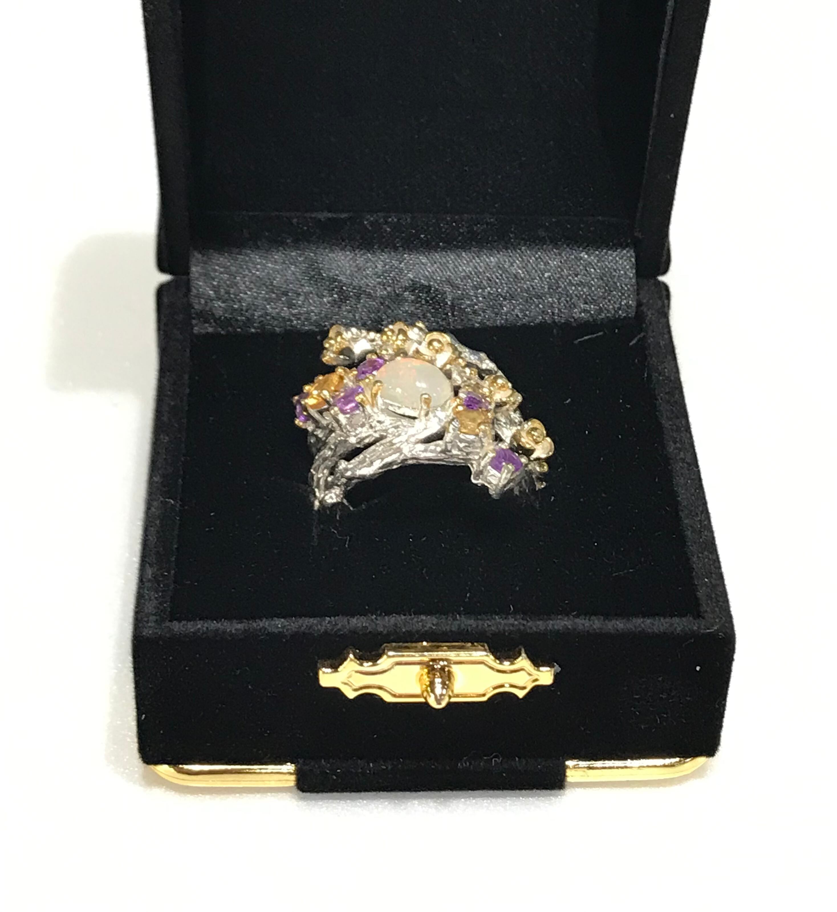 USAのジュエリーデザイナーがデザインして作ったゴージャスな925Sterling silverと天然の宝石Rainbow Opallの指輪★